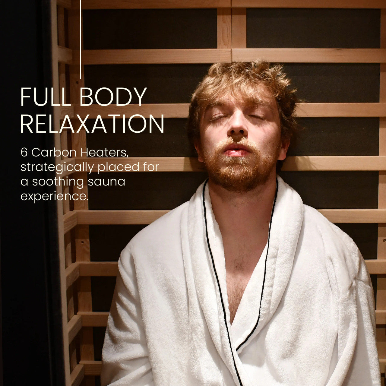 Unwind in ultimate comfort with this modern infrared sauna, designed to deliver full-body relaxation with ease. Equipped with six powerful carbon heaters, it surrounds you with soothing, therapeutic warmth, while the gentle orange LED lighting creates a tranquil ambiance to help you fully relax. Enjoy reading or meditating with a central reading light that provides just the right amount of illumination.