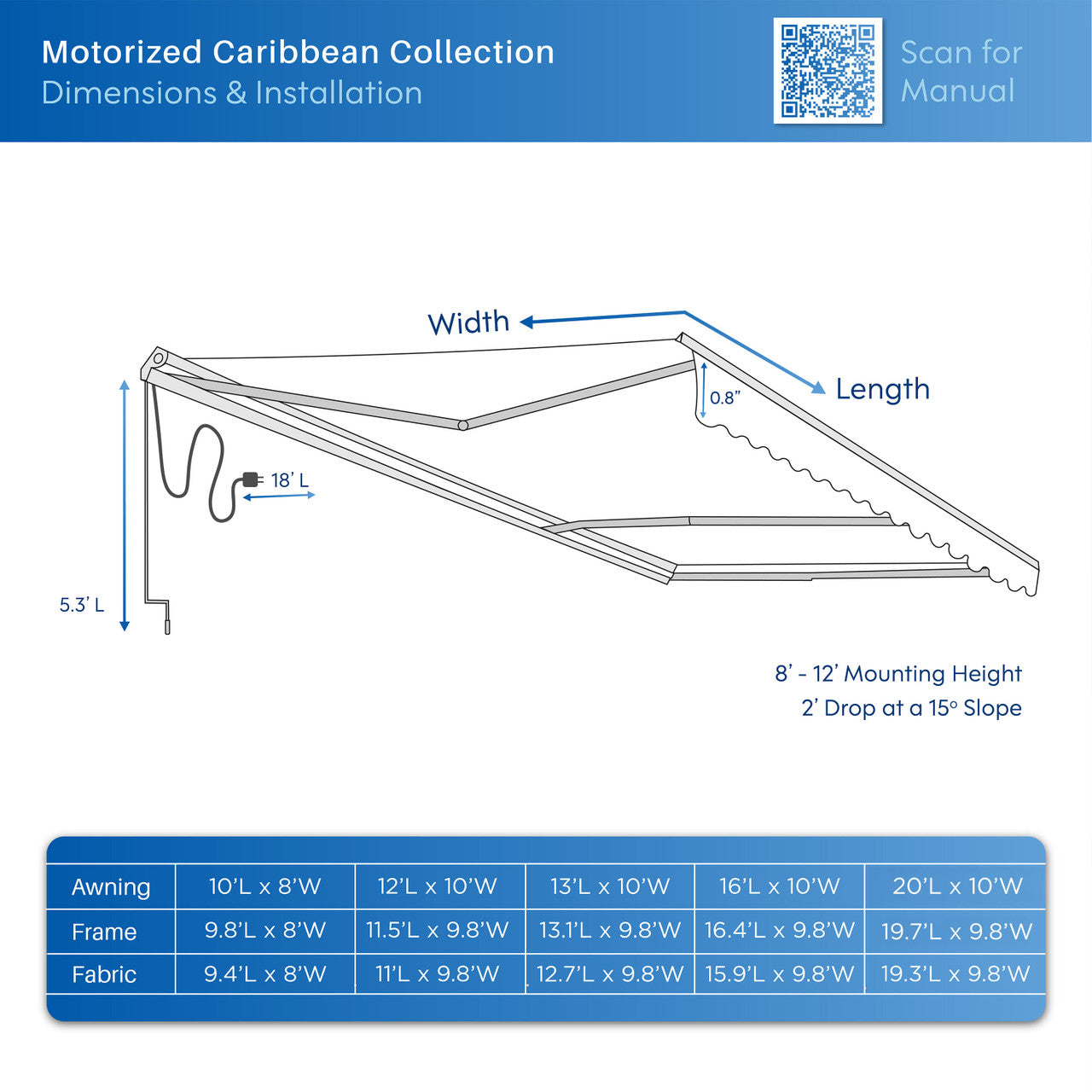 Aleko Caribbean Motorized Patio Awning - Ivory Cream - 20 x 10 Feet