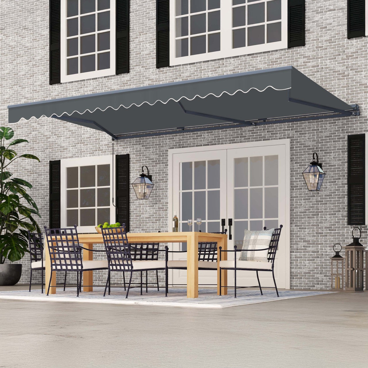 Aleko Moroccan Semi-Cassette Motorized Patio Awning - Charcoal Gray - 20 x 10 Feet