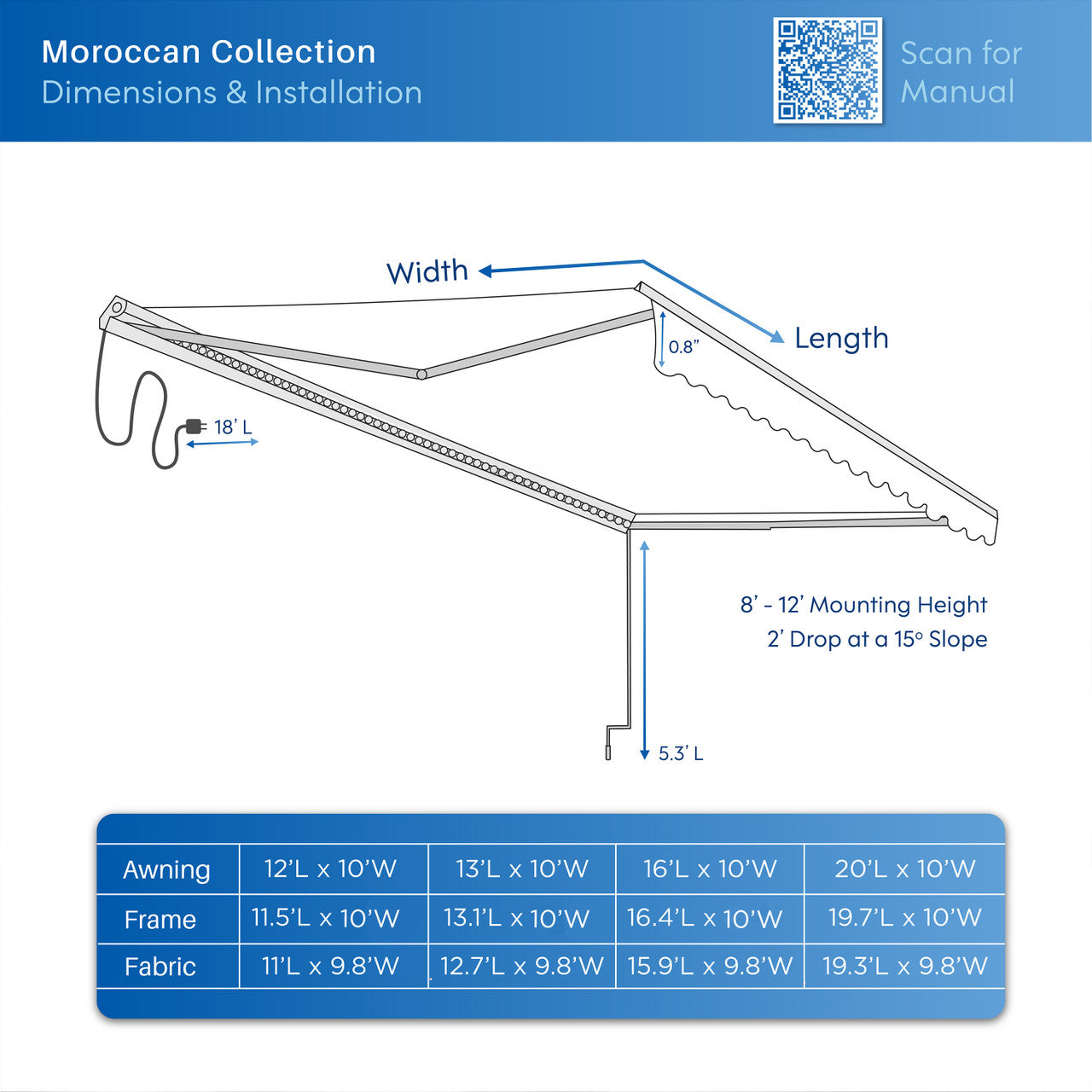Create a stylish, shaded retreat for relaxing or entertaining with the Moroccan Collection Awning. Its sleek semi-cassette frame protects the fabric when retracted, while built-in LED light strips with two brightness levels set the perfect mood after sunset. Designed for durability, the awning's UV- and water-resistant fabric offers reliable protection from the elements—so you can enjoy your outdoor space, day or night.