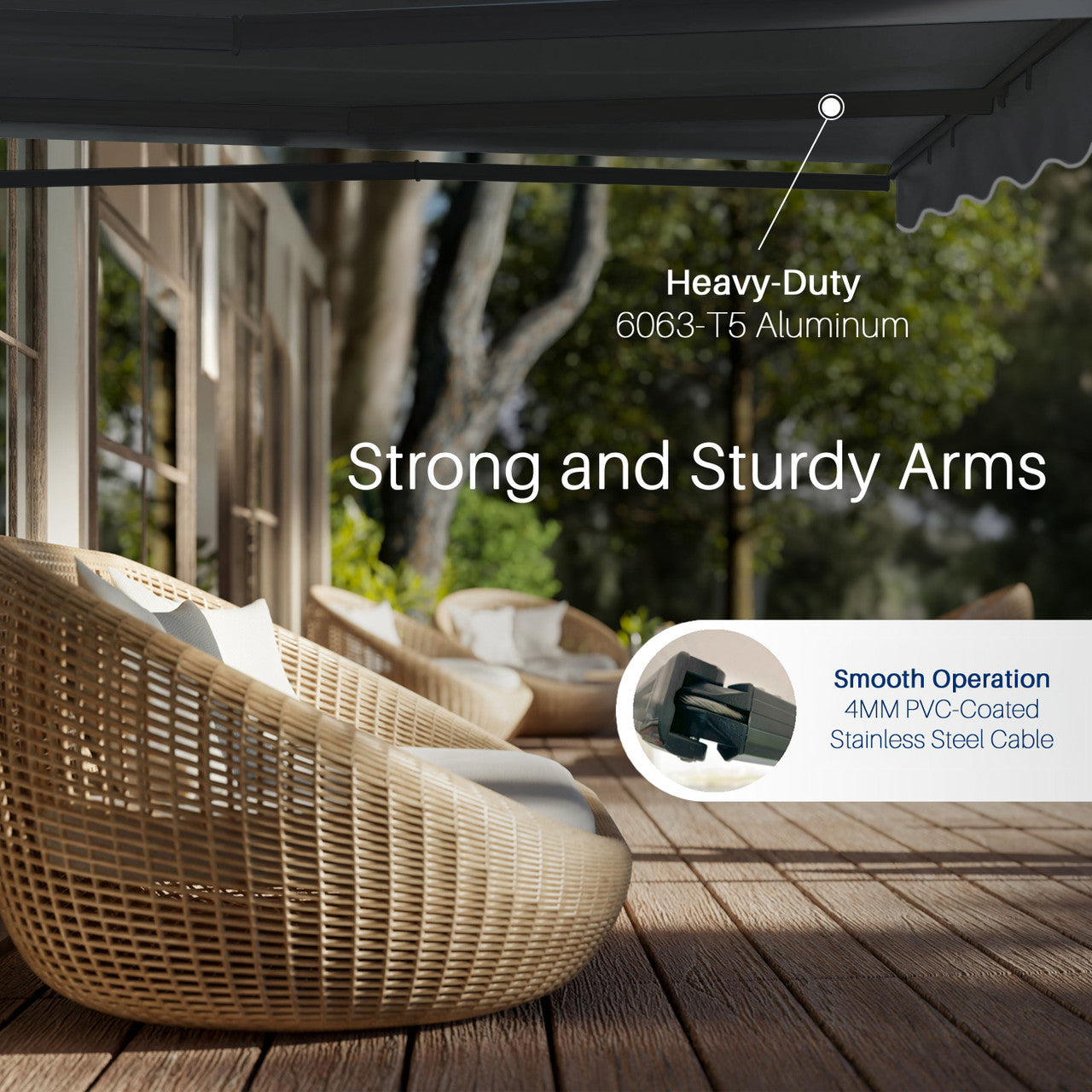 Aleko Moroccan Semi-Cassette Motorized Patio Awning - Onyx Black - 13 x 10 Feet
