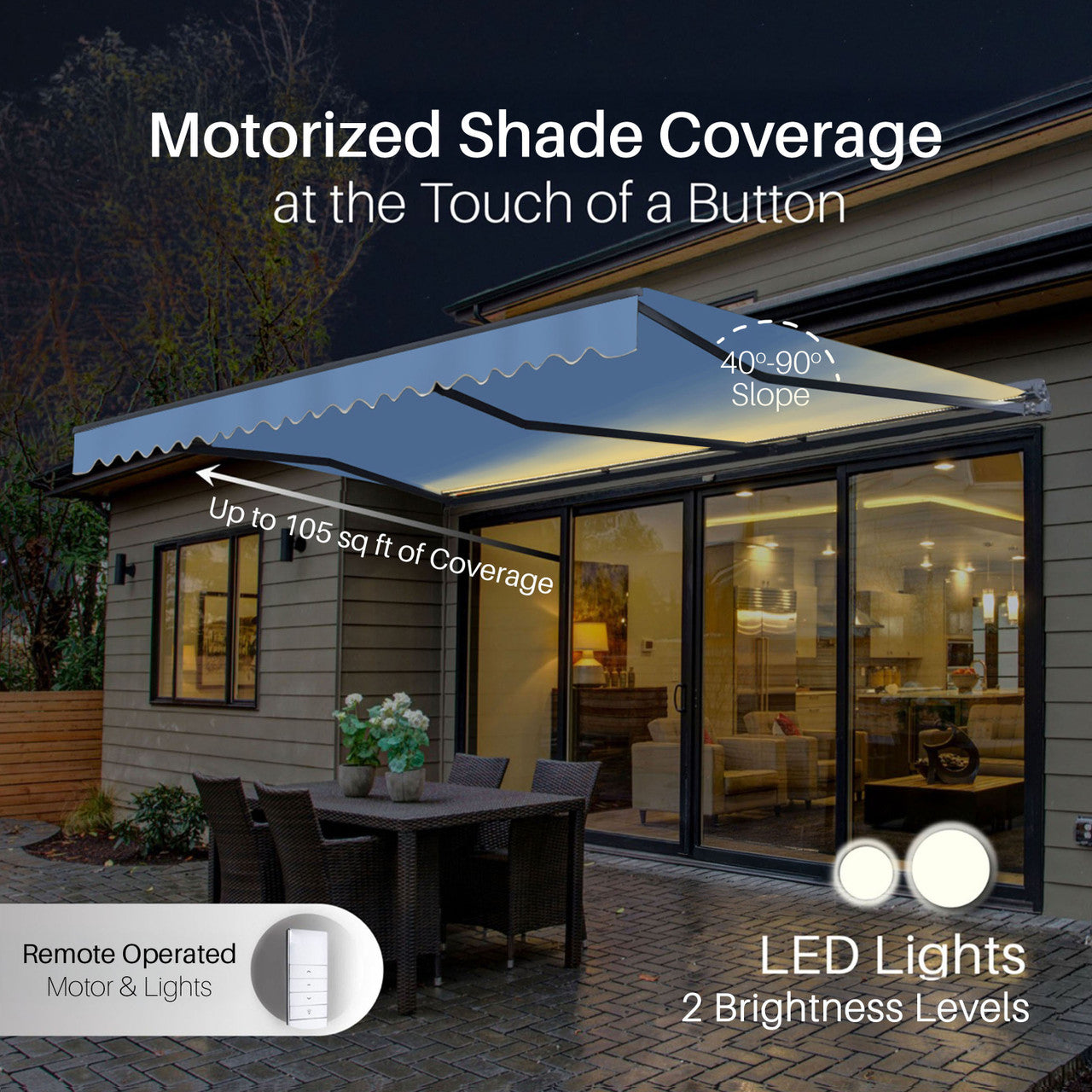Aleko Moroccan Semi-Cassette Motorized Patio Awning - Sky Blue - 12 x 10 Feet