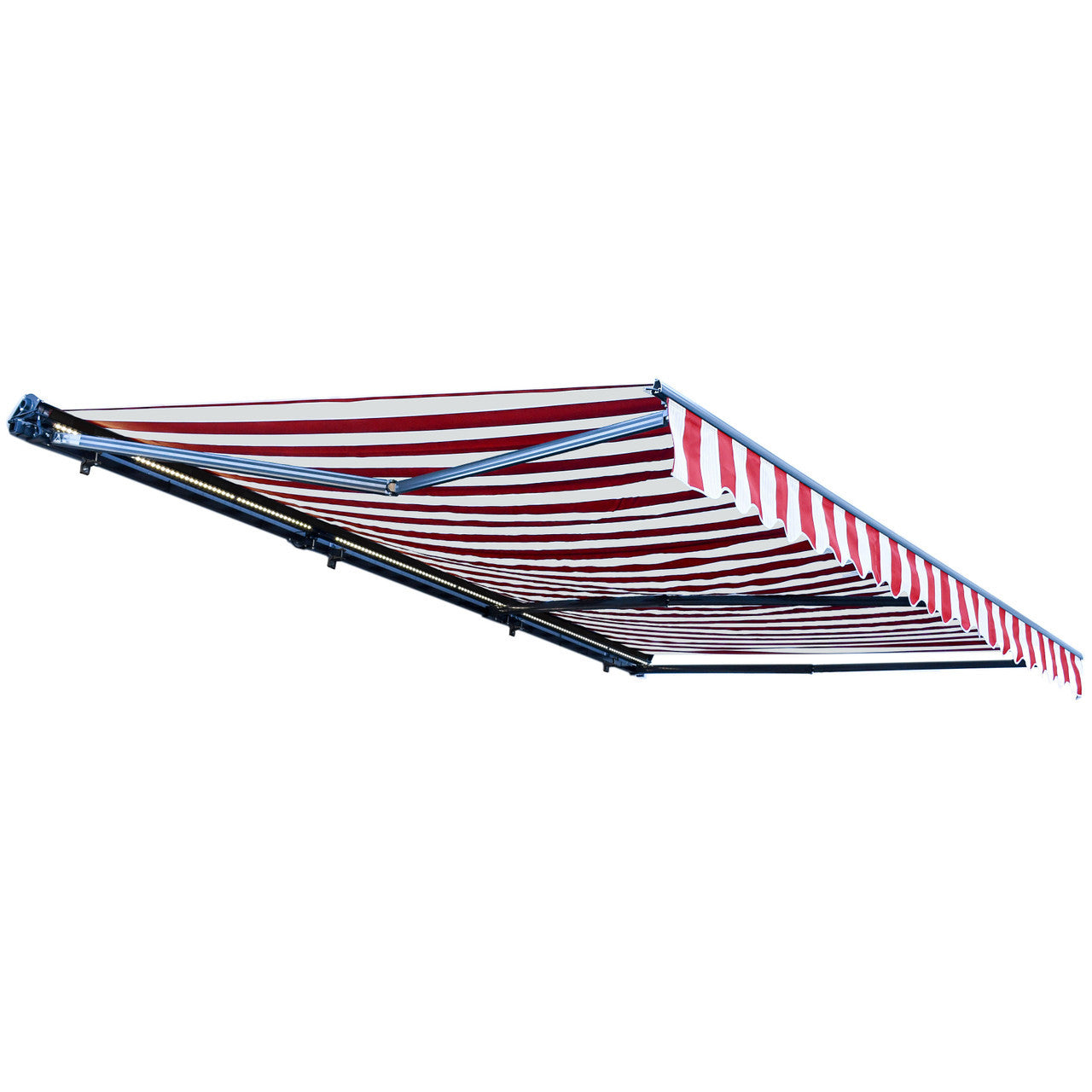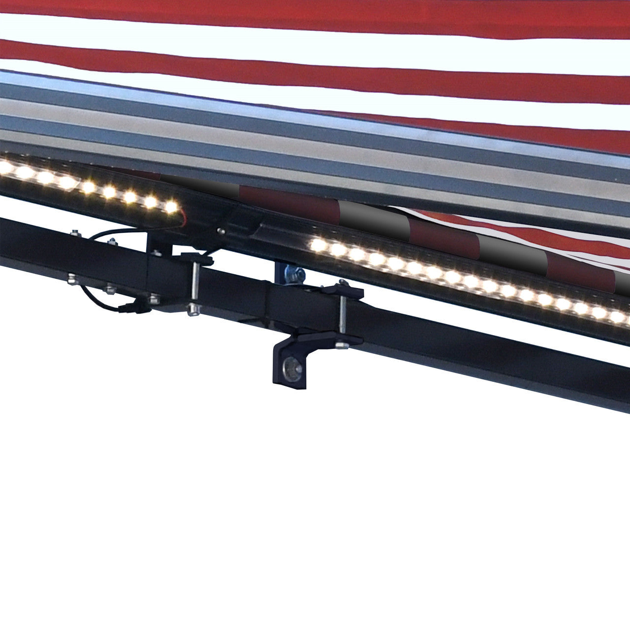 | Kit Includes: | (1) Semi-Cassette Frame; (1) Red and White Striped Awning Fabric; (1) Motor; (1) Set of LED Lights; (1) Handle Crank; (1) Remote; (1) Wall-Mounted Remote Holder; (1) Manual; (1) Set of Assembly Hardware |