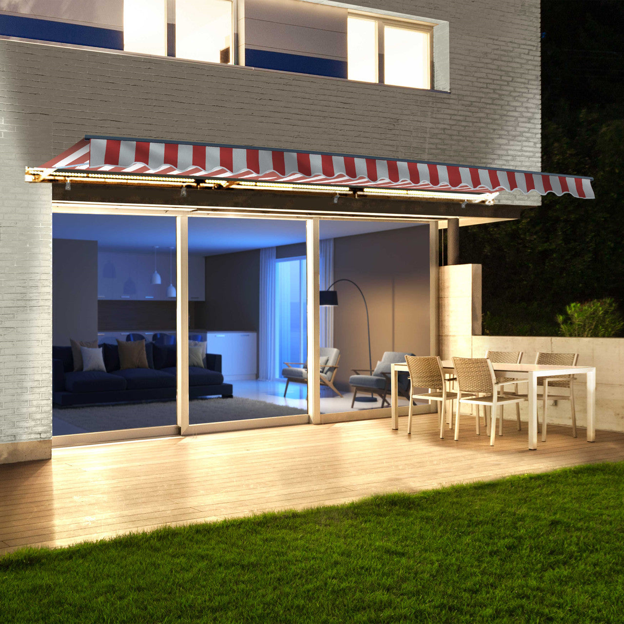 Create a stylish, shaded retreat for relaxing or entertaining with the Moroccan Collection Awning. Its sleek semi-cassette frame protects the fabric when retracted, while built-in LED light strips with two brightness levels set the perfect mood after sunset. Designed for durability, the awning's UV- and water-resistant multi-stripe fabric offers reliable protection from the elements—so you can enjoy your outdoor space, day or night.