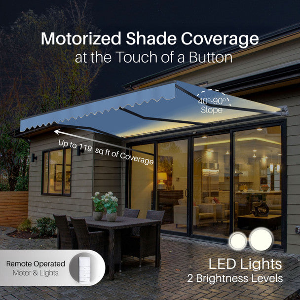 | Kit Includes: | (1) Semi-Cassette Frame; (1) Awning Fabric; (1) Motor; (1) Set of LED Lights; (1) Handle Crank; (1) Remote; (1) Wall-Mounted Remote Holder; (1) Manual; (1) Set of Assembly Hardware |