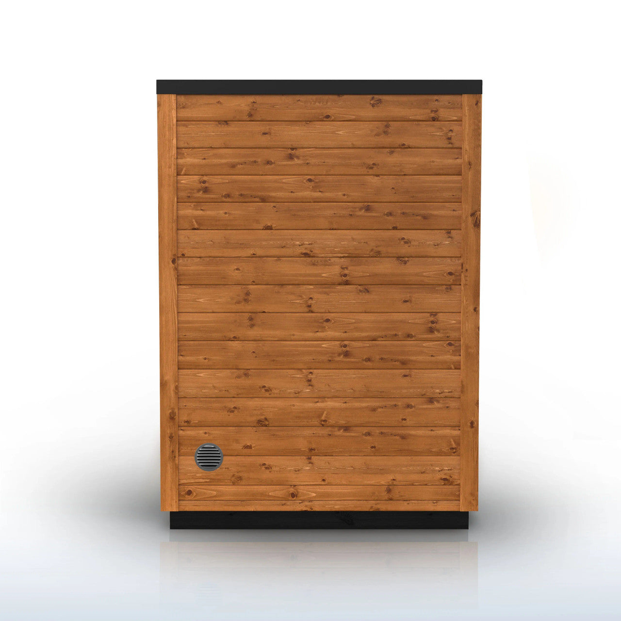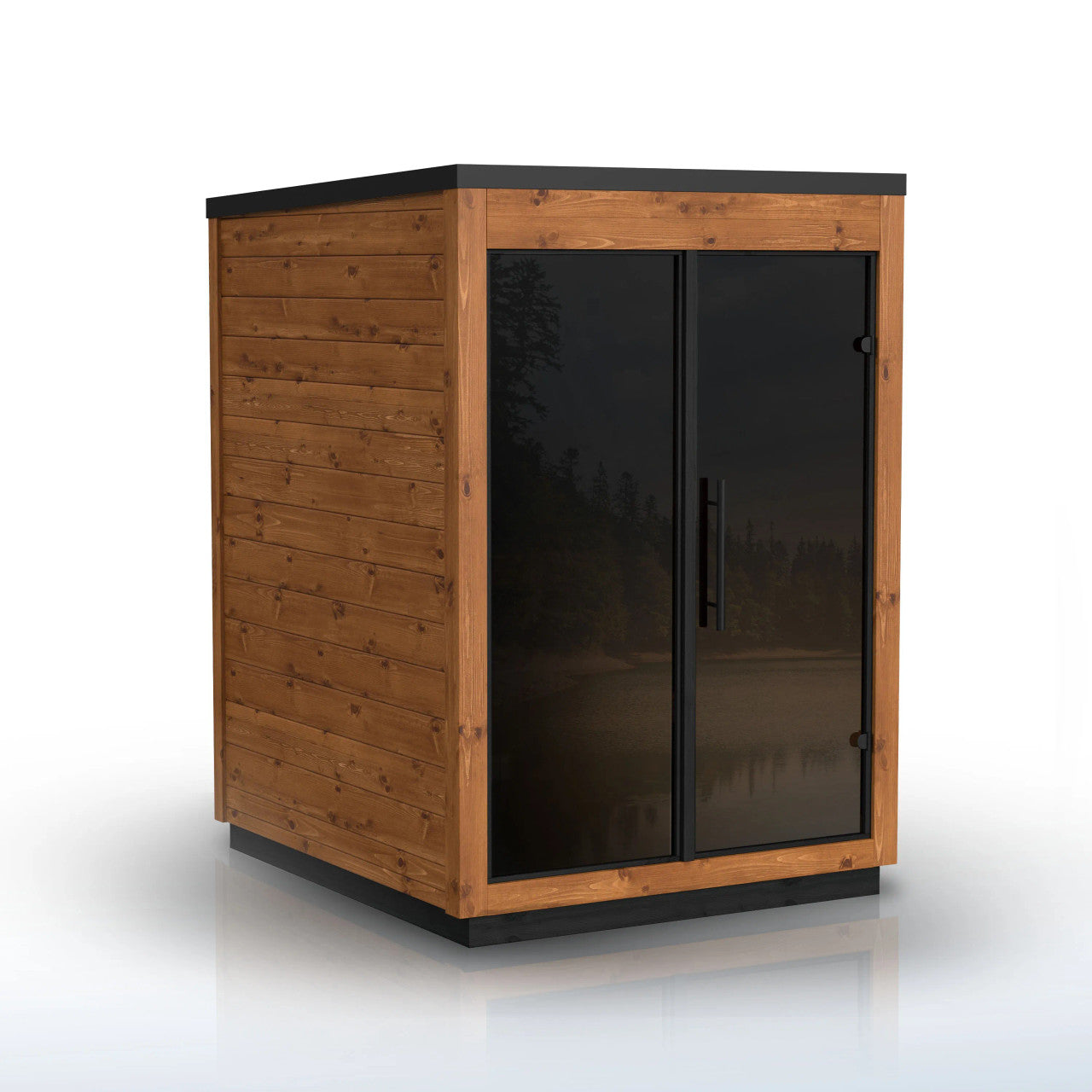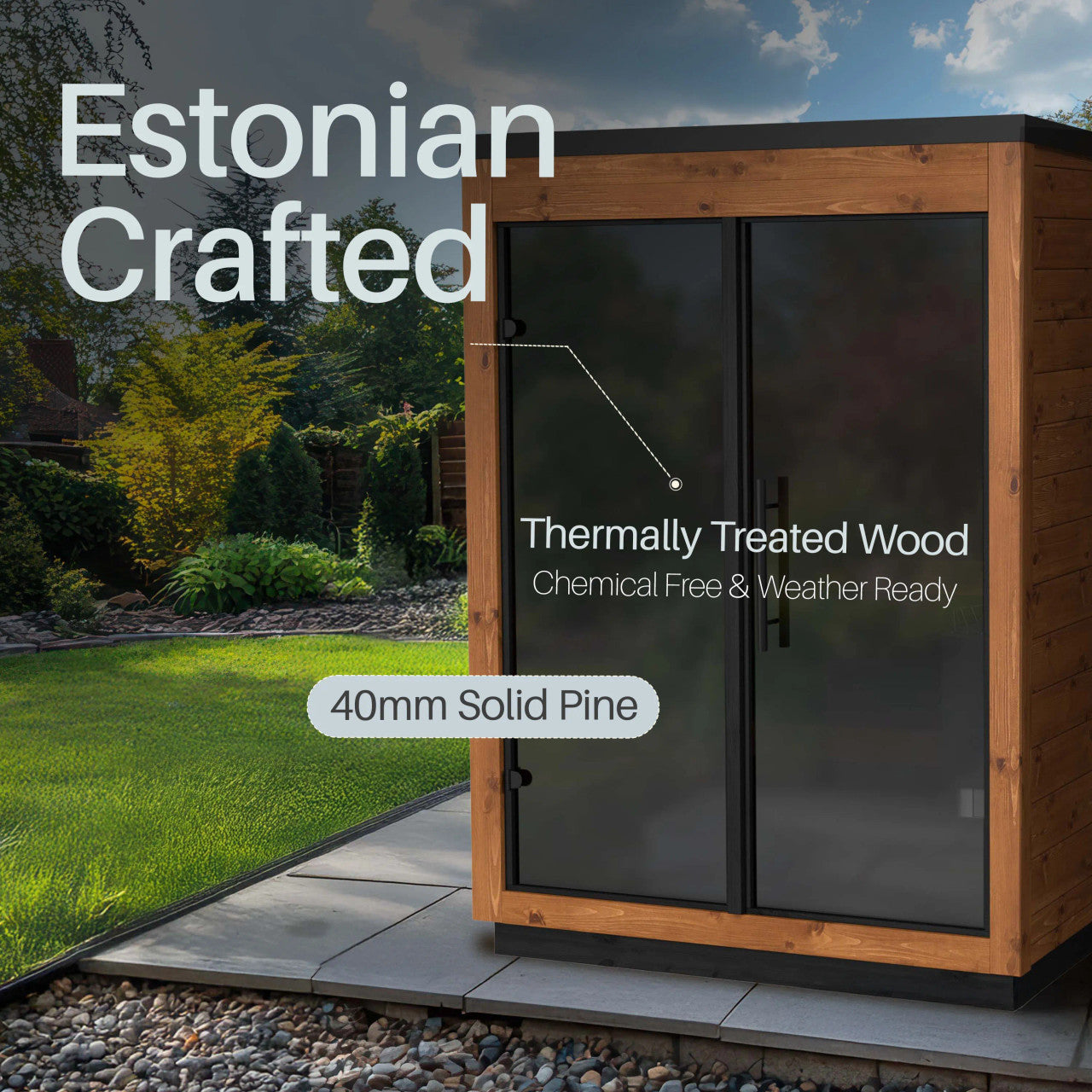 Bring authentic sauna relaxation home with this Estonian-made 2-person outdoor traditional sauna. Crafted from thermally treated Scots pine with 40 mm thick walls, it’s built for durability and heat retention. A UL-certified Harvia heater delivers consistent wet or dry heat, with stones and essential accessories included for a complete experience.