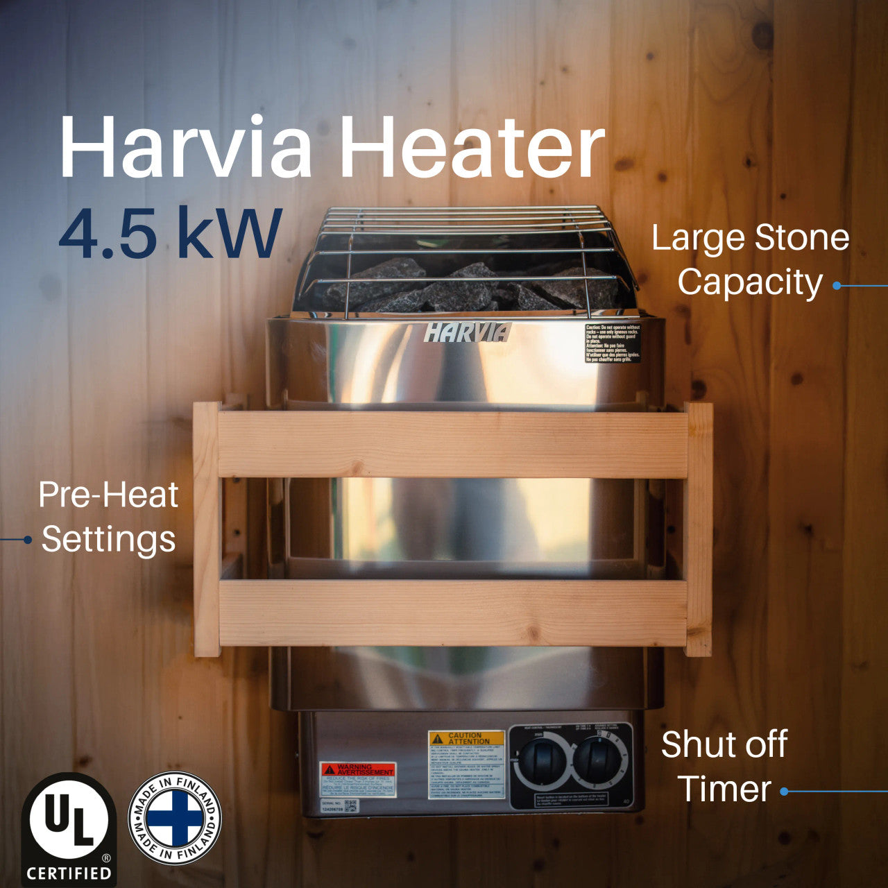 - UL-certified Harvia heater (Finland)