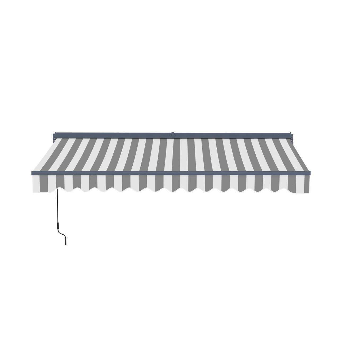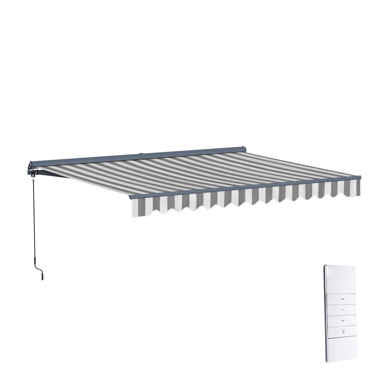 Aleko Moroccan Semi-Cassette Motorized Patio Awning - Seagull Gray & White Striped - 12 x 10 Feet