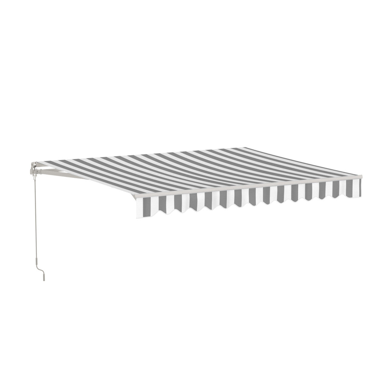 Aleko Caribbean Manual Retractable Patio Awning - Seagull Gray & White Striped - 13 x 10 Feet