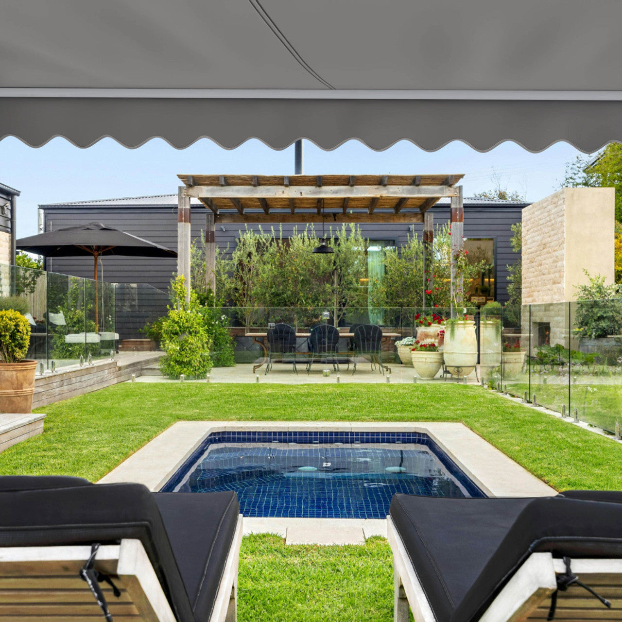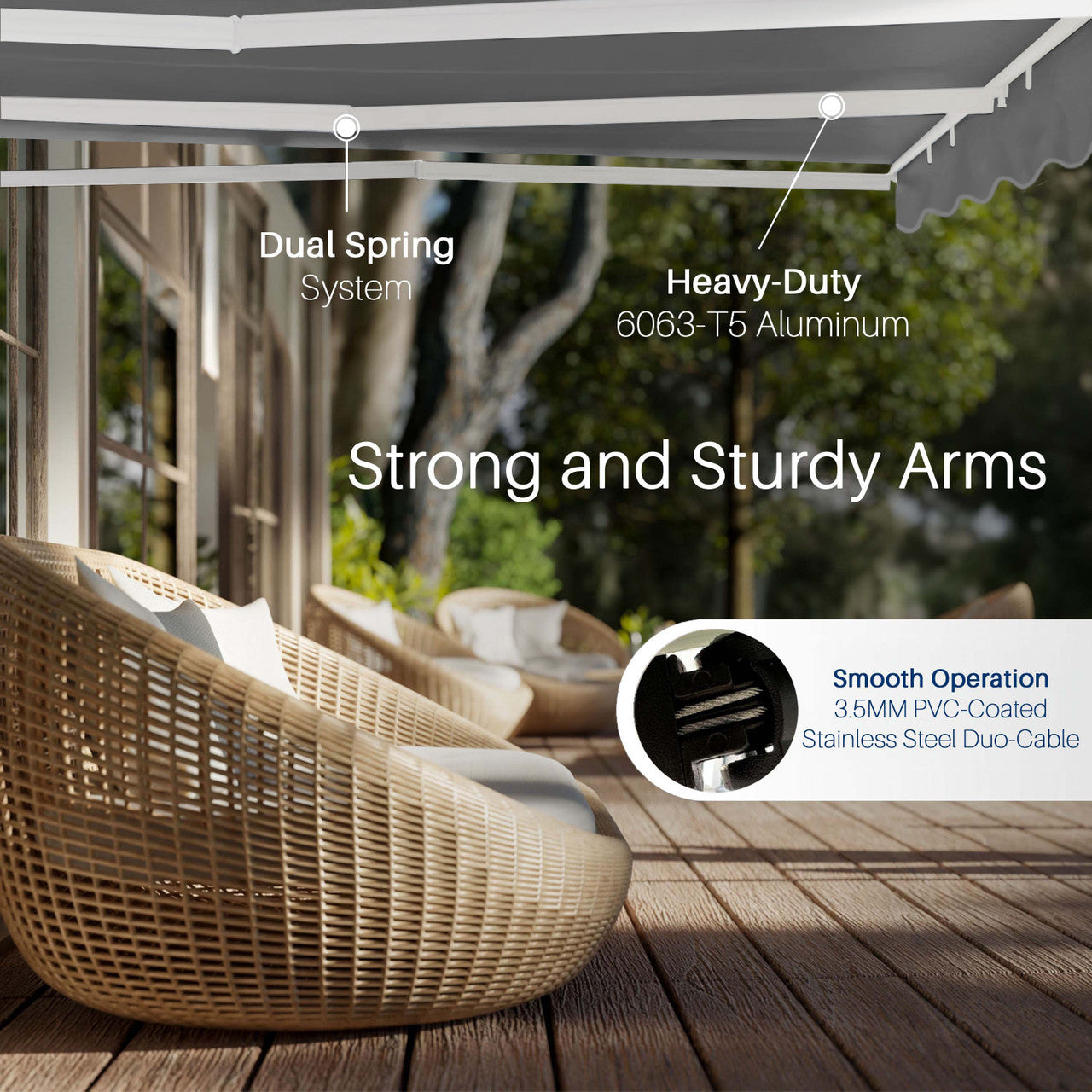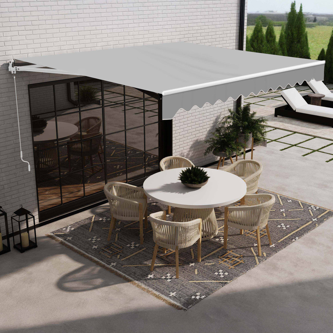 Transform your outdoor space with the effortless charm of this manual retractable awning. With a simple hand crank, you can create instant shade and comfort whenever you need it—no power required. Crafted from durable, weather-resistant materials, it adds a polished touch while offering breathable, sun-safe coverage for relaxing or entertaining outdoors.