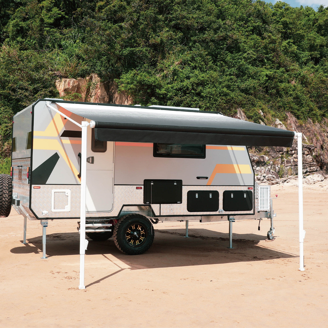 Our RV Awning features tear-resistant fabric made from waterproof and UV-resistant vinyl, ensuring durability in various weather conditions. The fabric is also resistant to mildew, stains, and fading, offering long-lasting appeal.