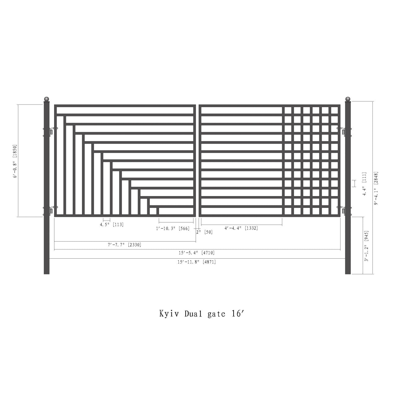 Aleko Steel Dual Swing Driveway Gate - Kyiv Style - 16 x 6 Feet - DG16KYIVD-AP