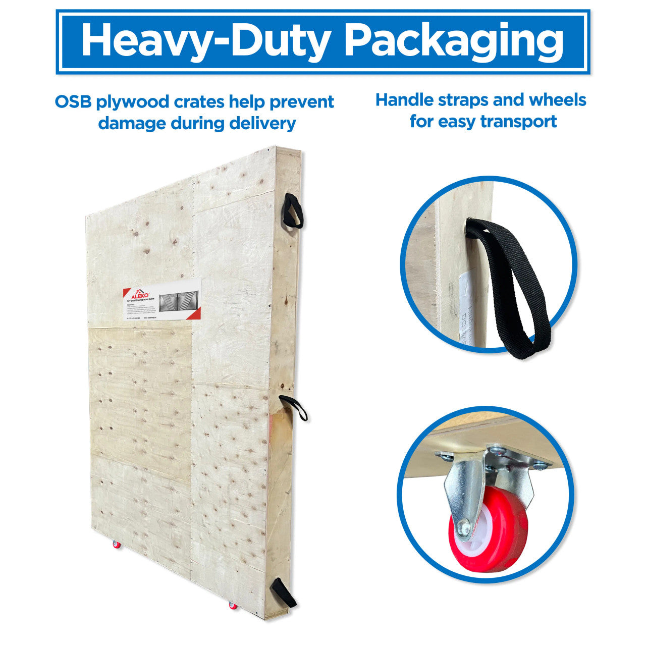 - Security gates are transported in heavy-duty OSB plywood crates to help prevent damage during delivery