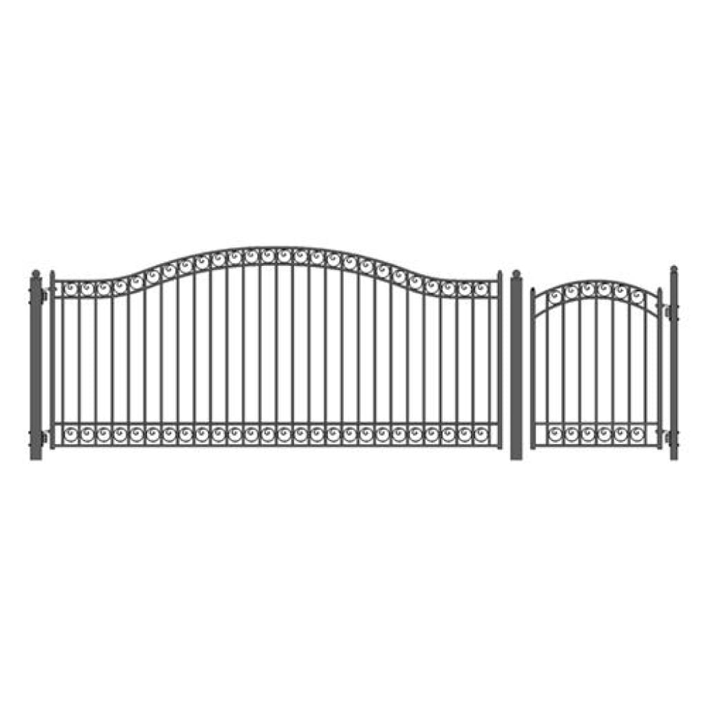 Aleko Steel Single Swing Driveway Gate Dublin Style 14 ft With Pedestrian Gate 4 ft SET14X4DUBS-AP