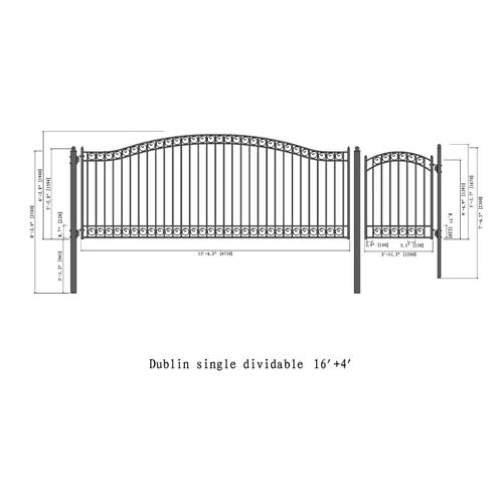 Aleko Steel Single Swing Driveway Gate Dublin Style 16 ft With Pedestrian Gate 4 ft SET16X4DUBS-AP