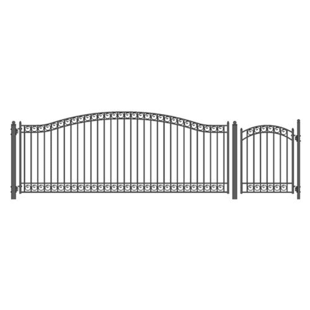 ALEKO’s Dublin Style Steel Gate Combo Set includes our famous 16 Foot Dublin Single Swing Driveway Gate with a matching Pedestrian Gate.