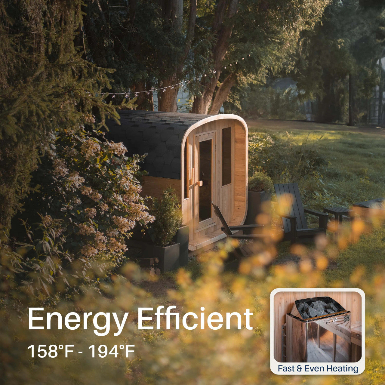 - UL-certified Harvia heater (Finland)