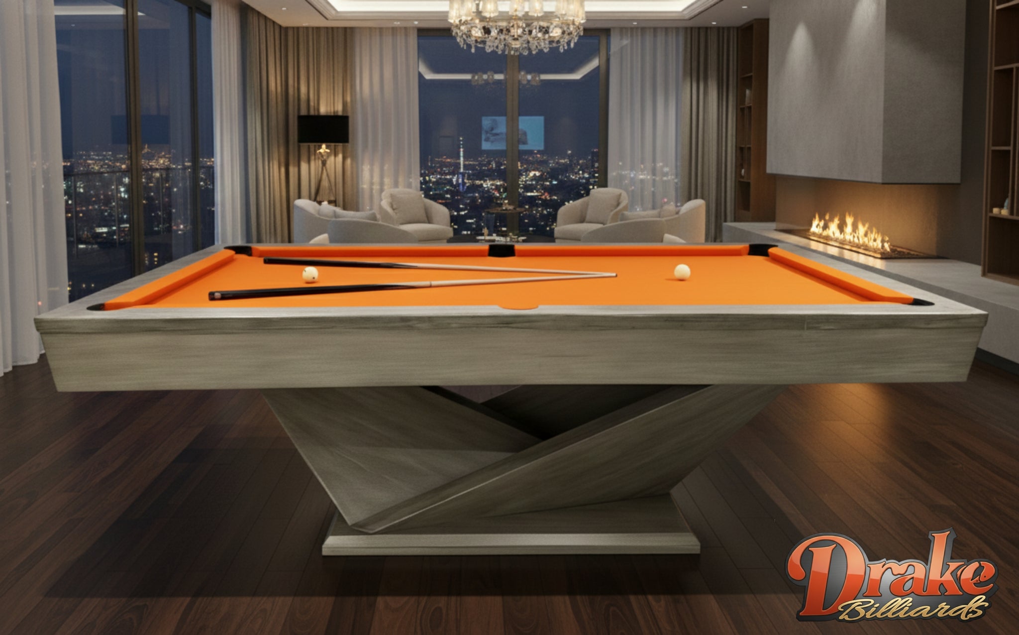 Classical meets modern. The "Iridium Sheen" is a common term used to describe the iridescent gloss found on the feathers of many ducks. The color that the observer sees changes depending on the angle of the light and the viewing angle, just like our Iridium Sheen tables. These Luxury pool tables are like a work of art in their space, showing elegance and sophistication from every viewing angle. Careful design and top-quality raw