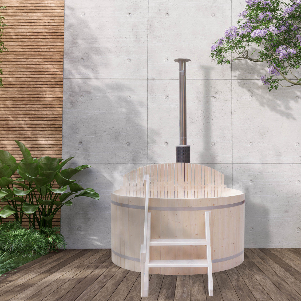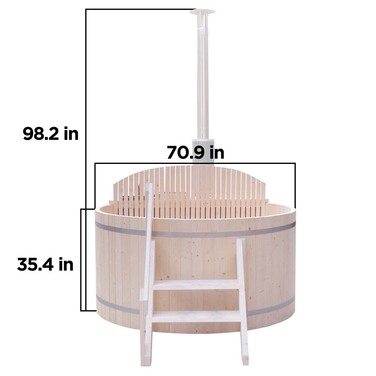 This wood fired hot tub and ice bath is made with premium pine wood and rust-resistant stainless steel. An insulated hot tub cover and steps are included with your purchase for more convenient maintenance and accessibility.